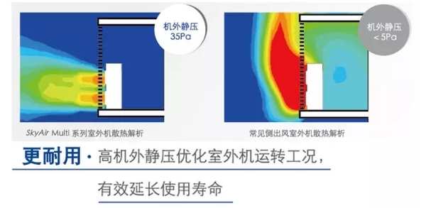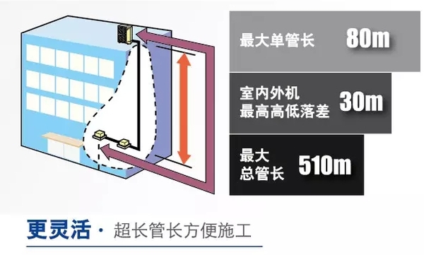 SkyAirMulti系列不僅機(jī)身小巧,可以根據(jù)業(yè)主需要隱藏在店鋪招牌后方、屋頂或建筑周邊綠化中,同時(shí)還輔以了長(zhǎng)配管設(shè)計(jì)和高機(jī)外靜壓,相較普通分體式一拖一空調(diào),連接長(zhǎng)配管時(shí)空調(diào)能力更足,散熱能力更佳,具有更好的空調(diào)使用效果。