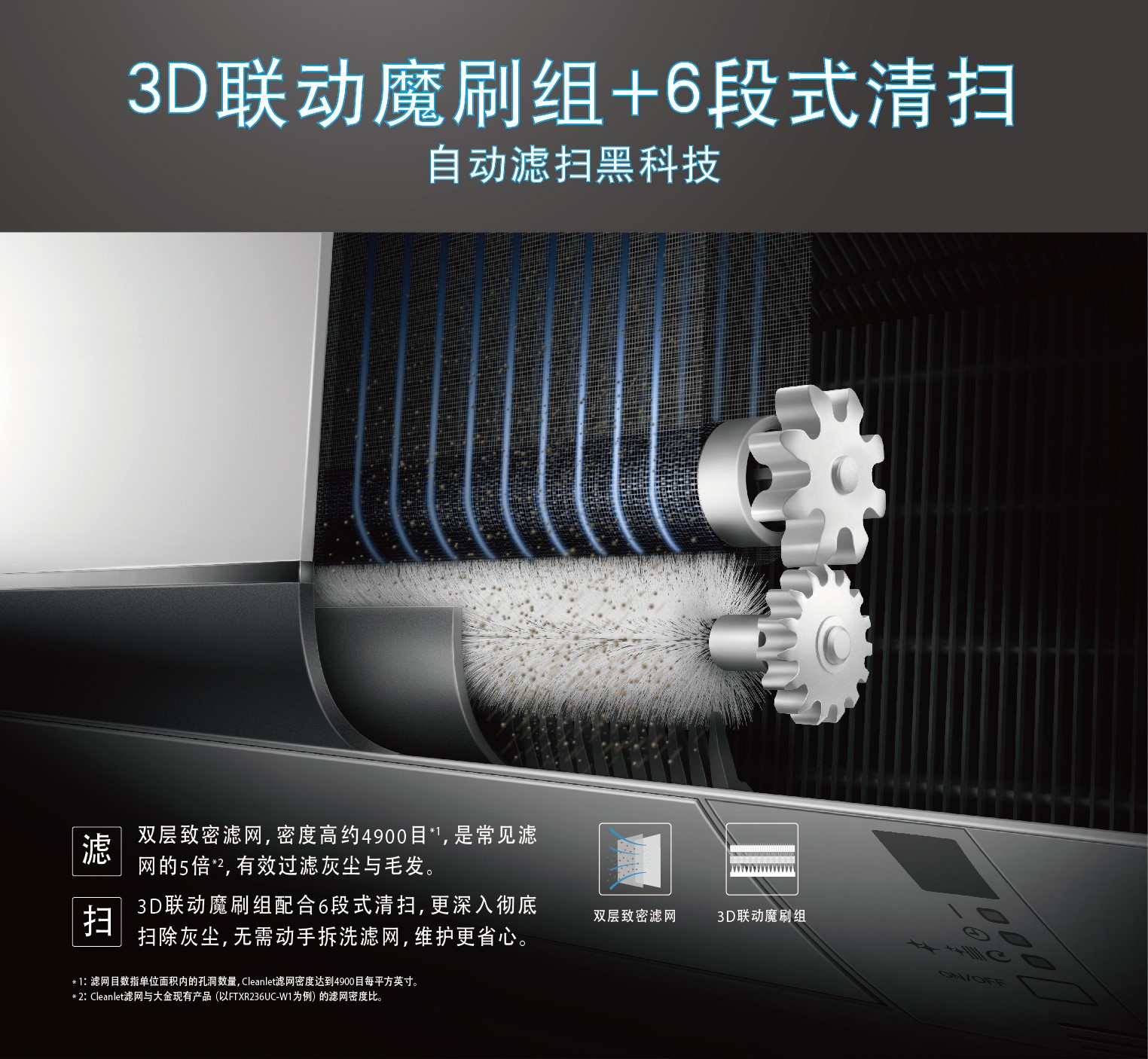 3D聯(lián)動(dòng)魔刷組匹配6段式清掃,自動(dòng)濾掃黑科技實(shí)現(xiàn)空調(diào)常用常新